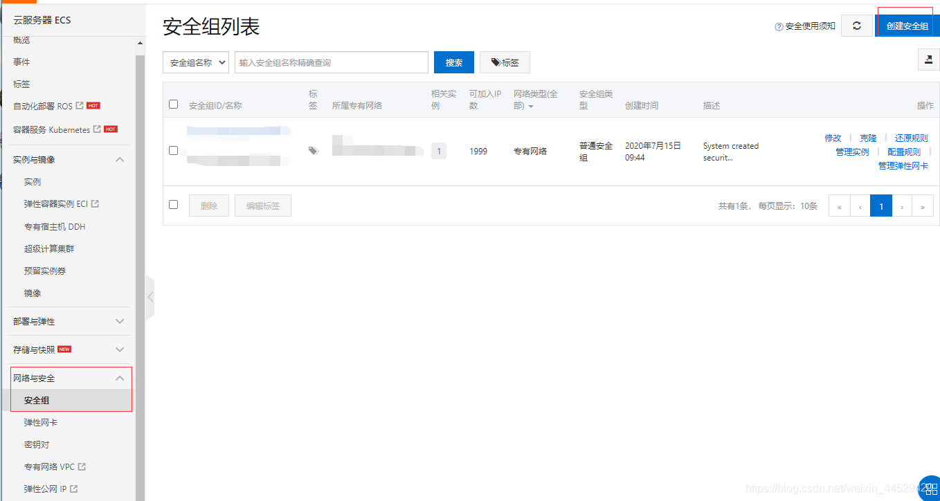 4、在服务器实例–>更多–>网络和安全组–>加入安全组,选择新建的安全组规则: