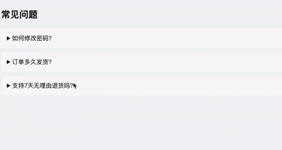 效果:标题下方显示下划线,左侧有一个可旋转的三角形图标,点击时图标平滑旋转。