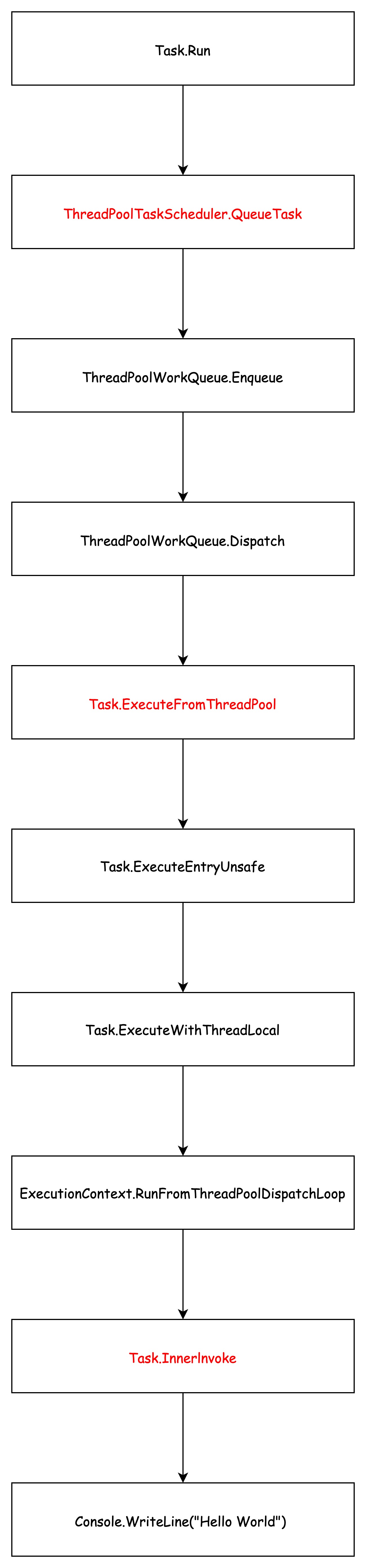 Task 针对 ThreadPool 的调用场景暴露了一个 ExecuteFromThreadPool 的 internal 方法,同时也提供了一个 ExecuteEntry 方法供其他场景调用,但是这个方法也是 internal 的。只能通过 TaskScheduler 的 protect 方法进行间接调用。