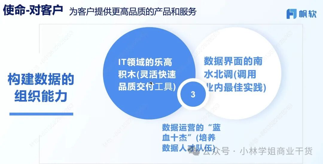 取舍和客户旅程路径的最优解思考,主动定义“有价值的事情”,利他才能利己:1)选择客户:从非标走向标准化,就意味着不给“非标”资源。2)让客户用起来并分享:搬运最佳实践:让客户用起来,以标杆客户为核心考核,3)实施:帮助客户培养数字人才,利他到利己,65%来自产品,35%来自实施服务。
