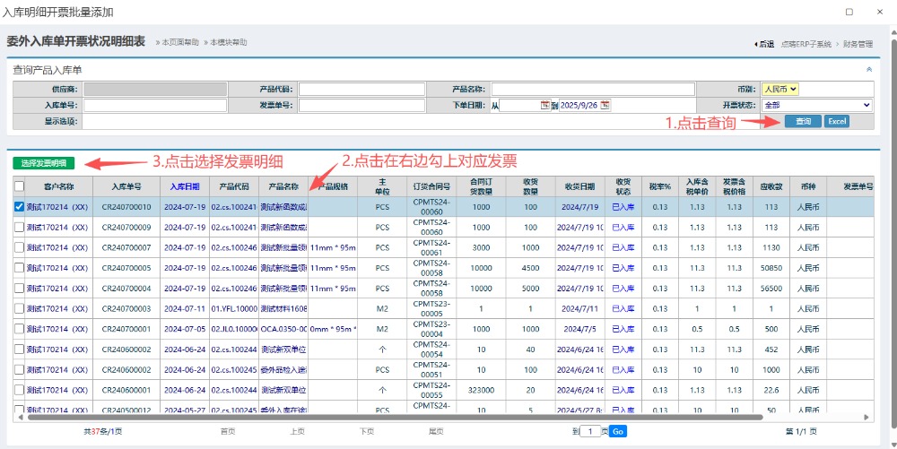 点晴模切ERP-委外入库发票-操作流程