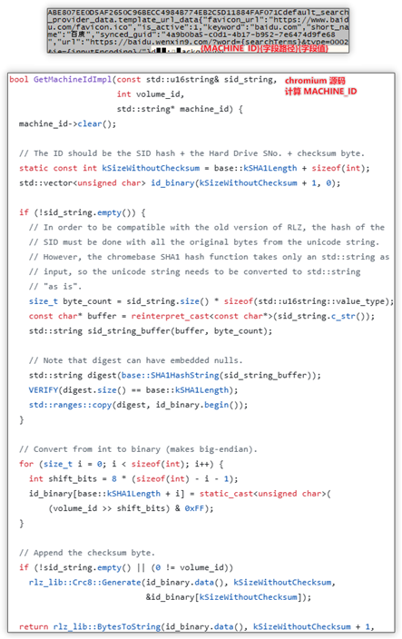 3. 计算 SID_SHA1 + VOLID 的 CRC8校验码,以 {SID_SHA1}{VOL_ID}{CRC8} 的形式组合成 19字节的机器码,取名为 MACHINE_ID。
