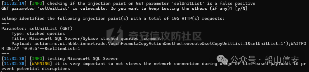参数存在注入,使用SQLMAP注入验证下,存在堆叠注入