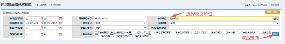 6.查询得到当前的单据状态,选择对应的送货单信息,点击“对账收款回单”。