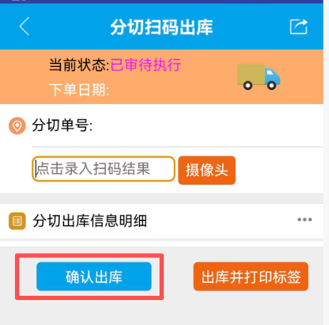 进入界面后,扫上对应的标签,点击“确认出库”按钮完成