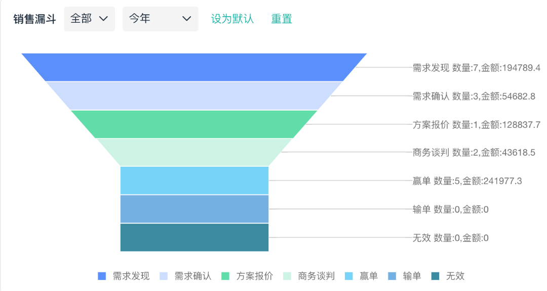 数据要看得见。 漏斗图能帮你一眼看到每个阶段的客户量、转化率。