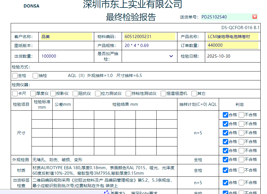 点晴模切ERP-新增出货品检报告-操作步骤
