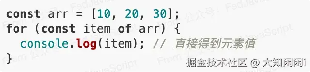 2. for…of循环ES6引入的专门用于遍历可迭代对象的语法:
